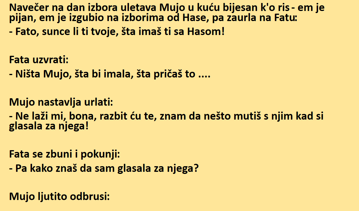 – Dobio sam samo jedan glas, nevjernice jedna, i taj je moj!