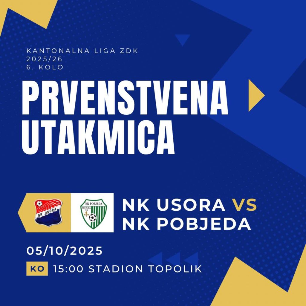 U nedjelju, 5. listopada 2025., u Usori će nastupiti tri domaća sportska kolektiva – NK Usora, NK Proleter Makljenovac i MNK Usora. NK Usora i NK Proleter igraju utakmice 6. kola Kantonalne lige Zeničko-dobojskog kantona u velikom nogometu, dok MNK Usora, kao malonogometni klub, odrađuje još jednu prijateljsku provjeru u sklopu priprema za novu futsal sezonu.